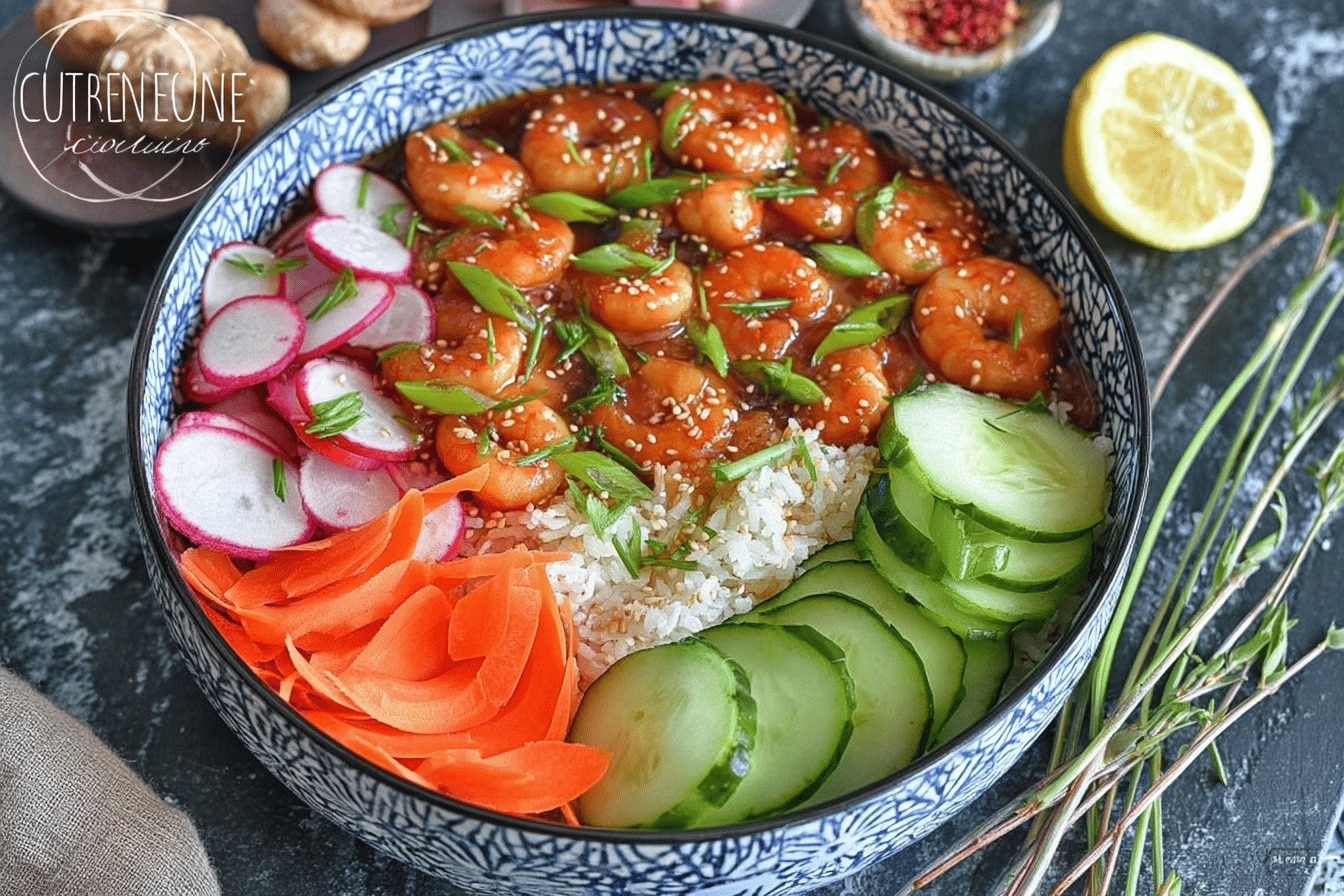 Poke bowl aux crevettes marinées – Recette saine, rapide et familiale à tester !