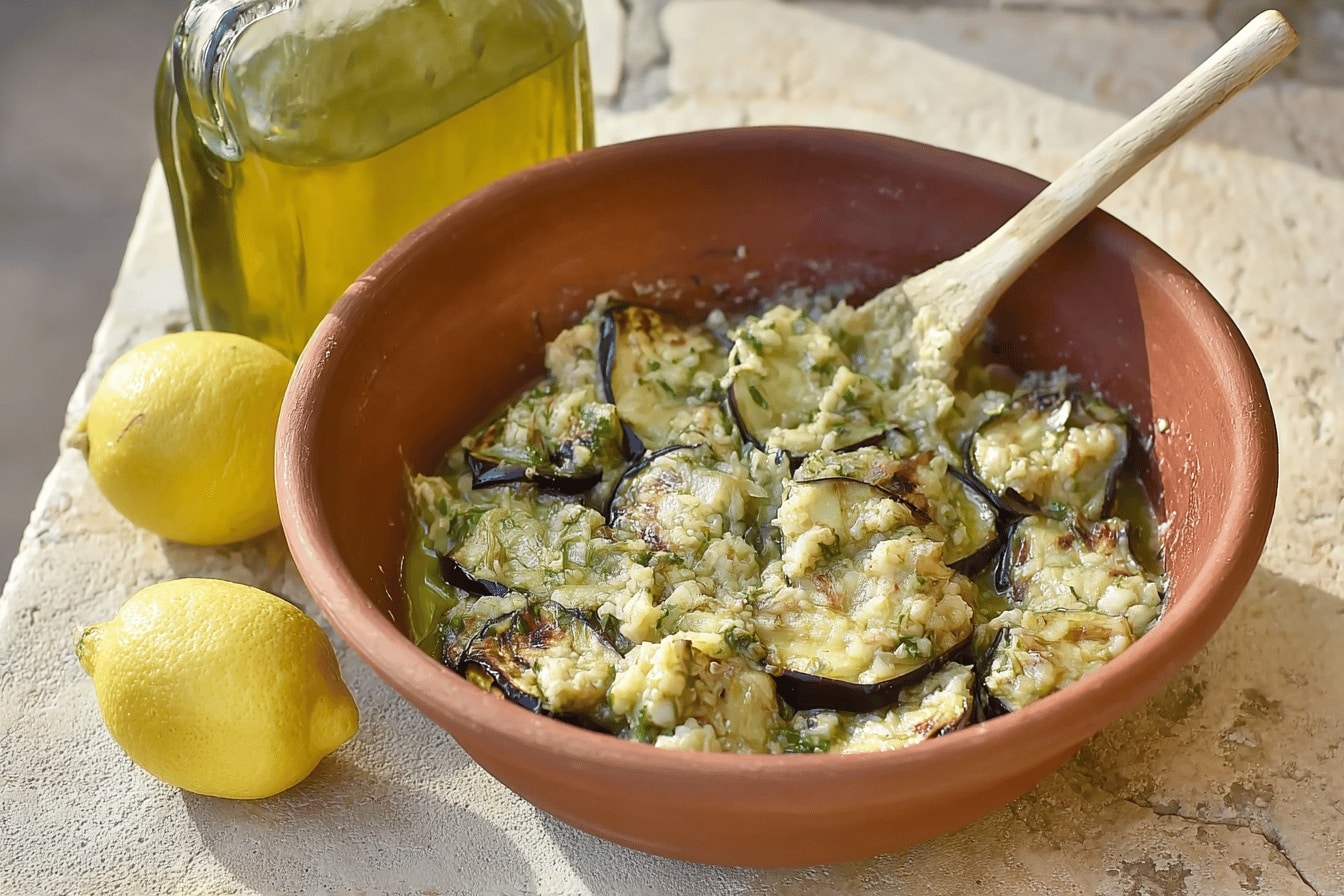 Vous pouvez, mais l’huile d’olive douce apporte ce goût fruité très doux qui complète parfaitement l’aubergine. Une huile trop forte ou piquante peut déséquilibrer la recette.Comment ajuster le goût avec le jus de citron ?