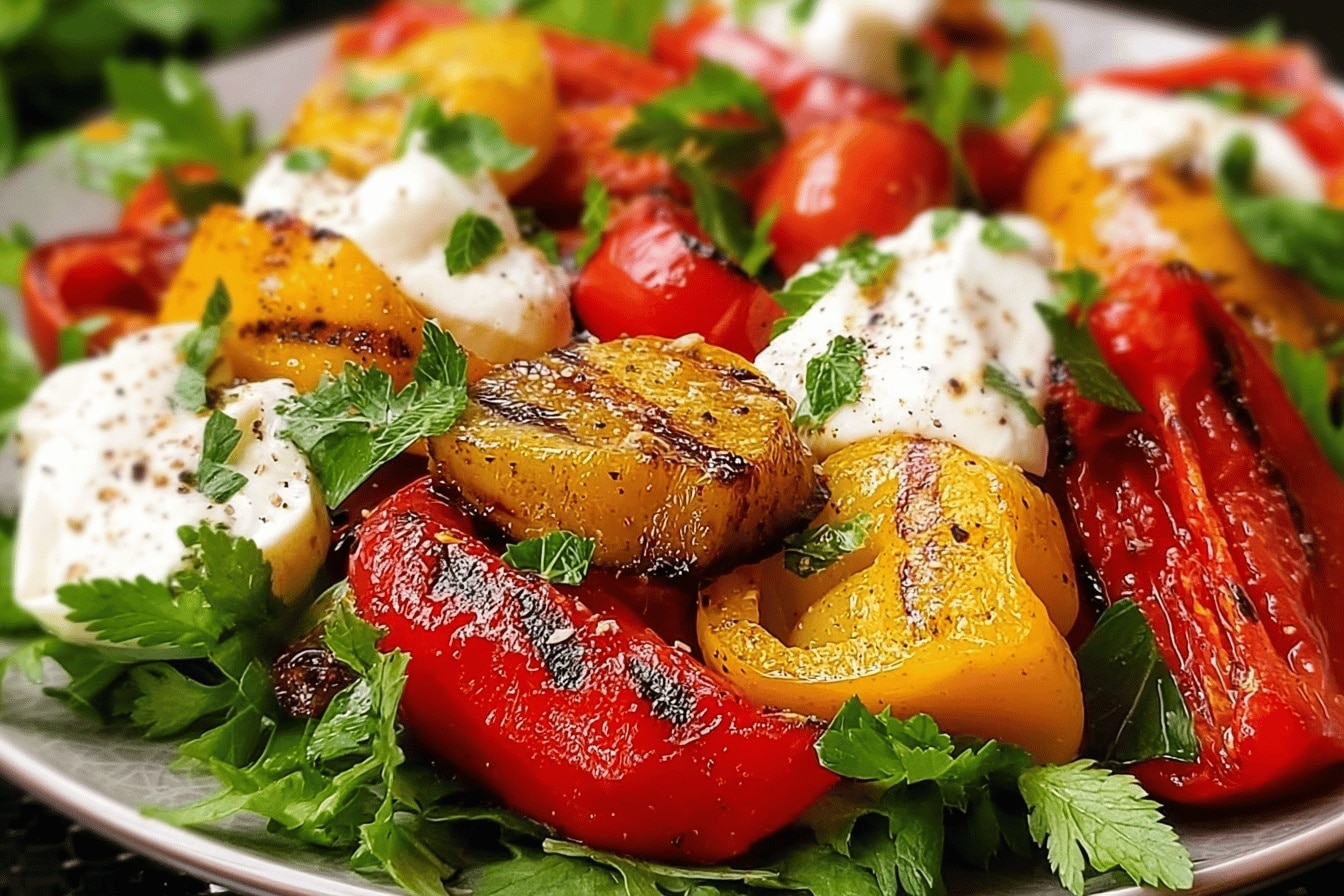 Quand on pense à une assiette pleine de fraîcheur et de gourmandise, la salade de poivrons grillés à la burrata fait souvent partie des premiers choix chez moi. Franchement, j’ai découvert cette recette un peu par hasard, un soir où j’avais juste des poivrons qui traînaient dans le frigo et une burrata presque périmée… spoiler, c’était une super idée ! Les poivrons grillés, un peu noircis par endroits – oui, j’avoue j’ai parfois laissé un peu trop longtemps sur le feu – donnent tellement de caractère, du coup la burrata toute crémeuse qui fond dessus, c’est l’association parfaite.La magie des poivrons grillés