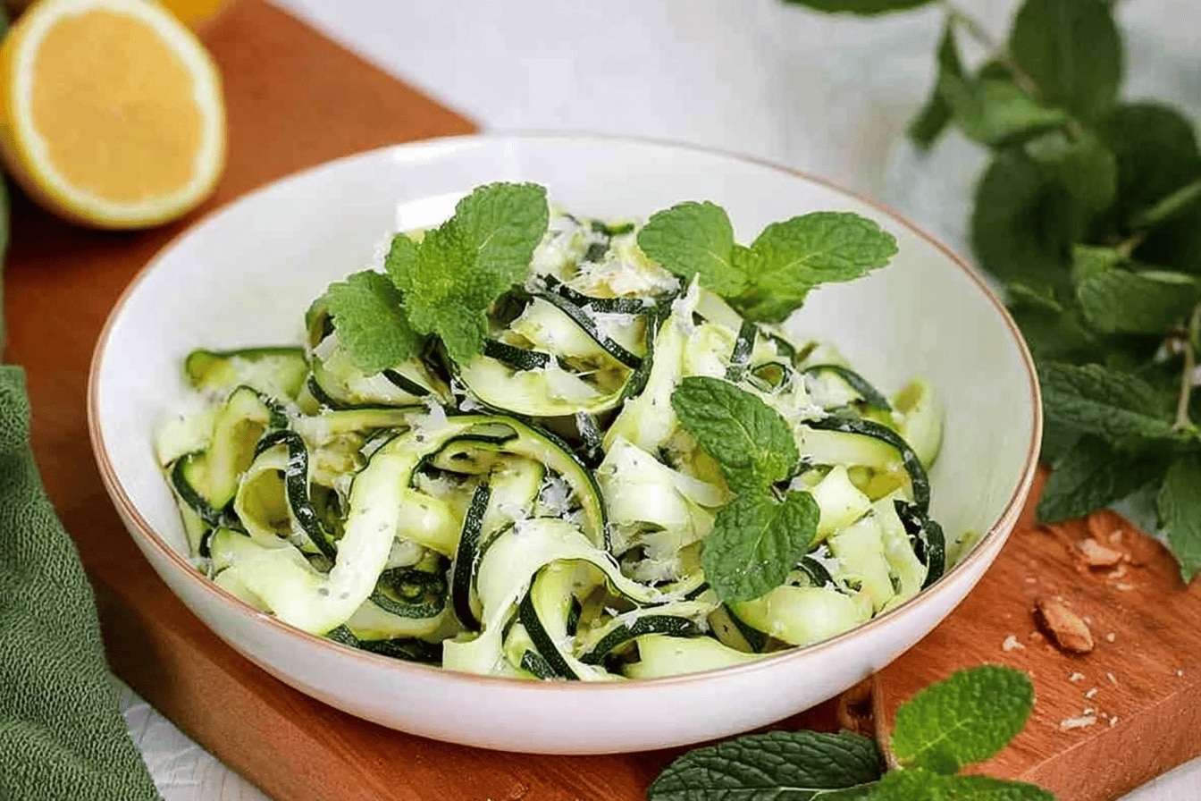 Salade rafraîchissante et légère, cette recette met en valeur la fraîcheur de la courgette crue associée à la saveur vivifiante de la menthe. Les tagliatelles de courgette apportent une texture croquante et délicate, idéale pour une entrée ou un plat d’été agréable à déguster. Une préparation simple et saine qui invite à savourer la douceur naturelle des légumes de saison.