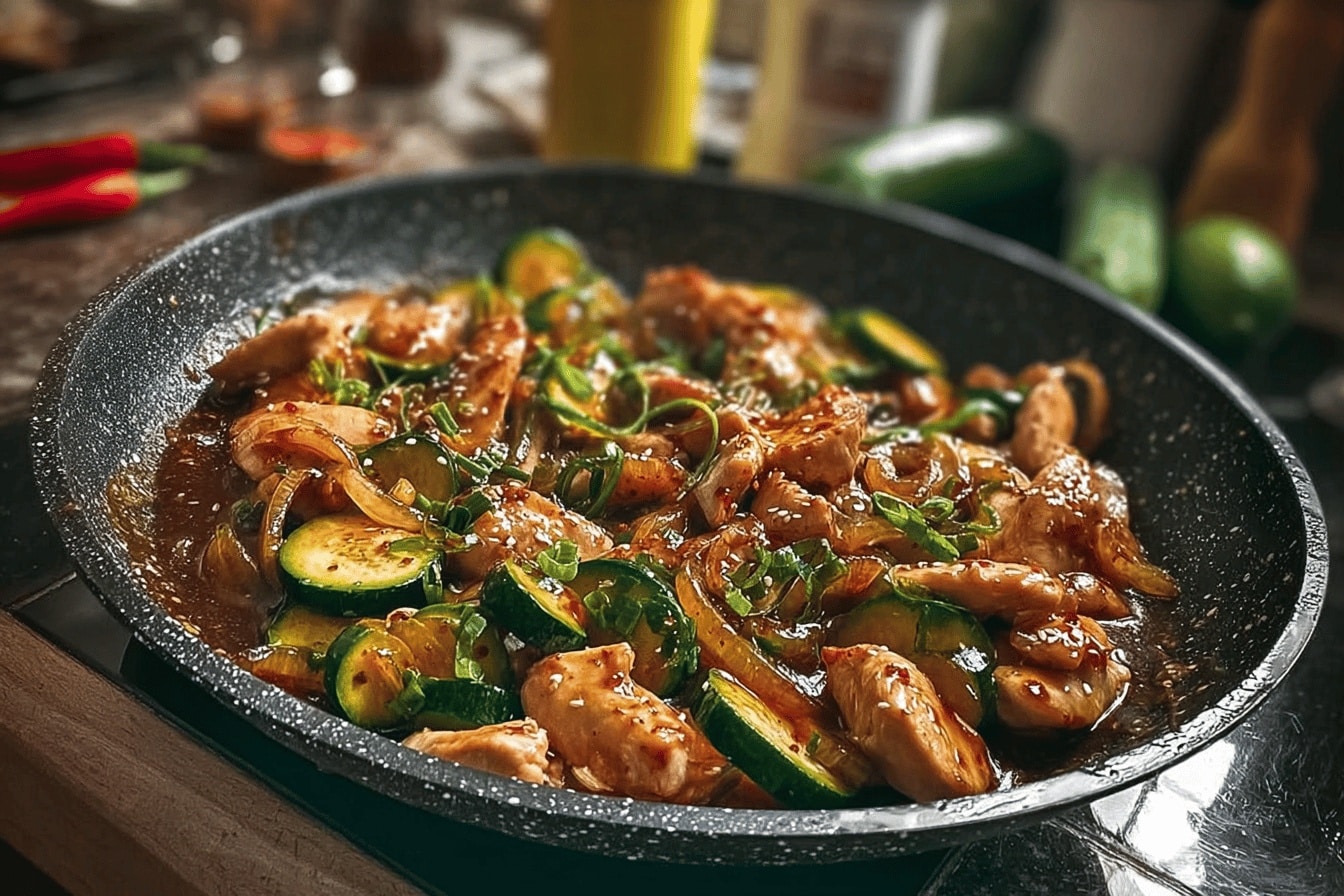 Ah, le sauté de poulet courgette à la sauce soja, c’est un peu mon allié secret les soirs où je rentre épuisée, sans envie de passer des heures en cuisine. Je dois vous avouer, ce plat, ce n’est pas de la grande gastronomie, non, c’est plutôt ce truc simple qu’on fait avec ce qu’on a sous la main, vite fait, mais qui finit toujours par être un vrai régal. Je me rappelle une fois, j’avais presque cramé les courgettes parce que j’ai papoté un peu trop longtemps avec mon voisin pendant que ça cuisait… Résultat, un léger croustillant inattendu qui a ajouté un petit plus bizarre mais plutôt sympa. Le mélange de la douceur des courgettes avec la sauce soja salée, ça donne une harmonie surprenante, presque addictive. Si vous cherchez une recette rapide, pleine de saveurs et sans prise de tête, vous êtes au bon endroit. On va vous embarquer dans une petite aventure culinaire simple, mais gourmande, qui met du soleil dans l’assiette sans trop se compliquer la vie. Allez, c’est parti ! PrintSauté de Poulet Courgette à la Sauce Soja : Recette Savoureuse et Rapide