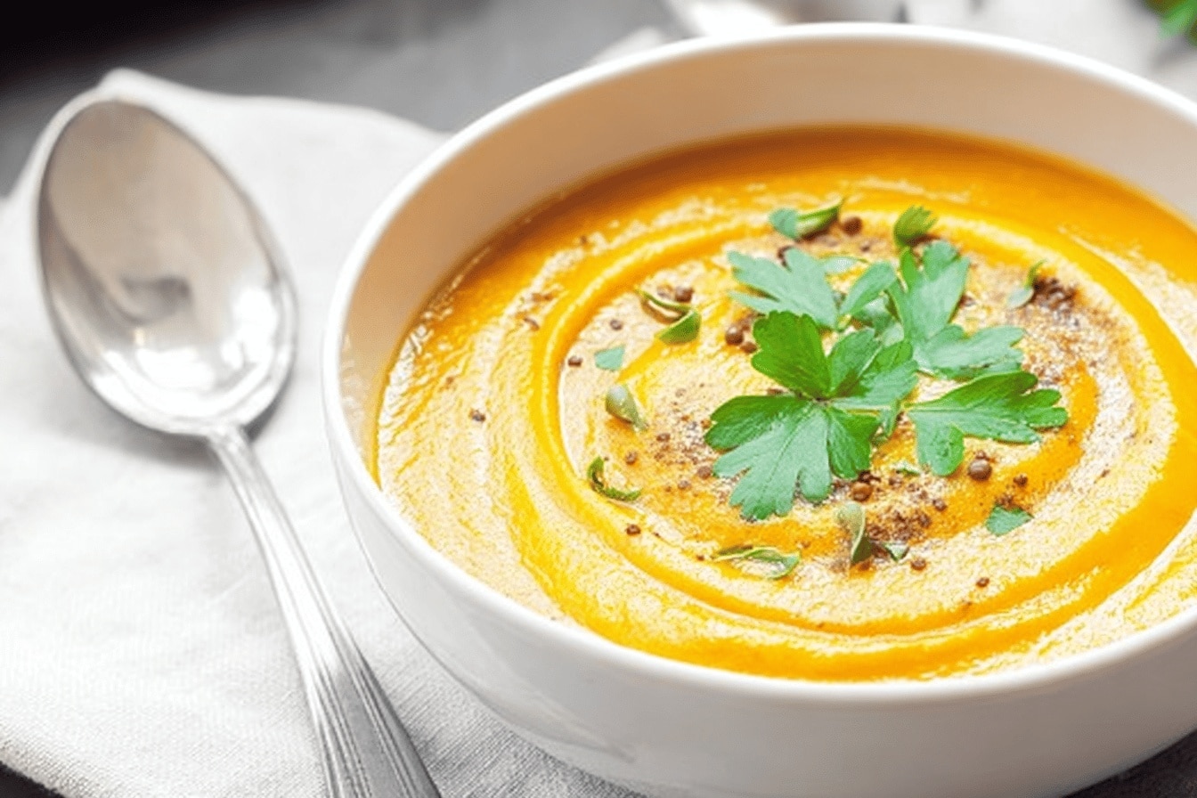 L’automne, c’est ma saison préférée pour mijoter des plats réconfortants, et cette soupe au potimarron & lentilles corail, c’est un petit trésor que j’adore refaire chaque année. Je me souviens la première fois que j’ai essayé cette recette, j’avais un peu trop zappé de laver correctement le potimarron… Résultat, un petit grain de sable qui croquait sous la dent, mais bon, ça faisait partie du charme, non ? Entre les couleurs orangées qui réchauffent la cuisine et cette odeur douce qui emplit l’air, c’est un vrai câlin dans un bol. Facile à préparer même quand on a peu de temps ou envie de faire simple, elle marie la douceur de la courge avec la légère noix des lentilles corail, tout en étant incroyablement saine. En plus, c’est parfait pour les repas en semaine, quand on rentre un peu fatigué et qu’on a juste envie d’une soupe qui fait du bien au moral sans prise de tête. Bref, si vous cherchez une recette chaleureuse, honnête, et pleine de saveurs d’automne, vous êtes au bon endroit. PrintSoupe au potimarron & lentilles corail – Recette saine et facile d’automne